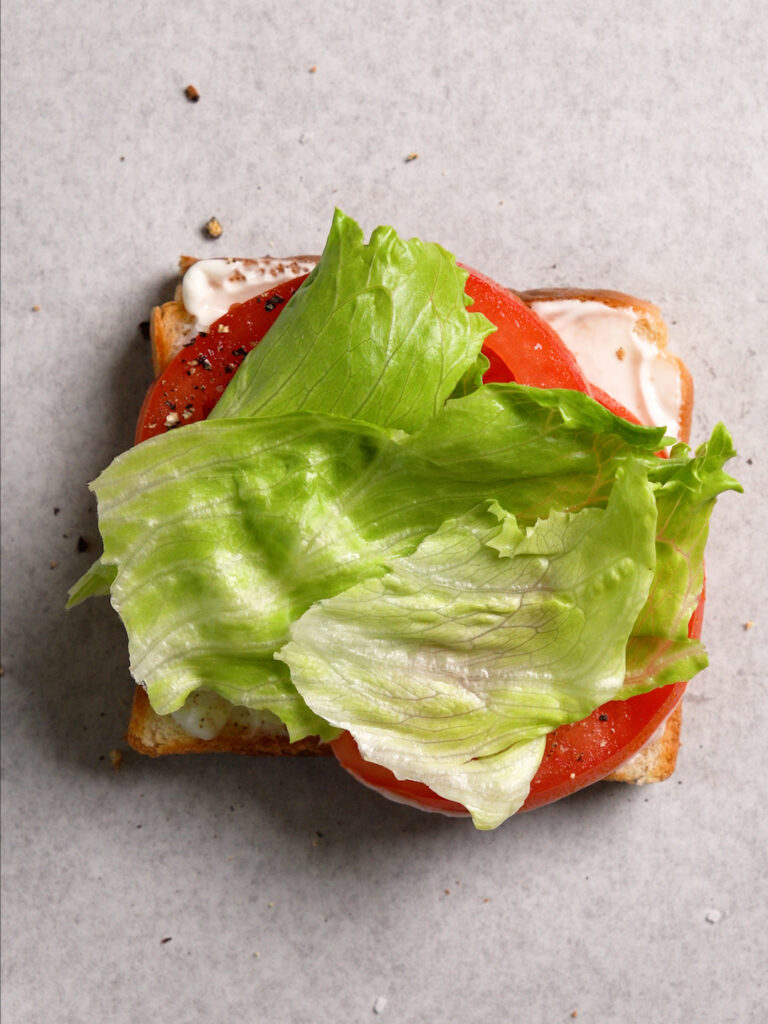 I’ve tried numerous configurations and honestly, it doesn’t matter that much to me! I would say as long as the bacon is on top so it doesn’t get buried by the tomato and lettuce, you’re good.