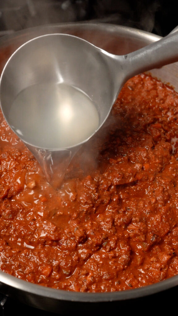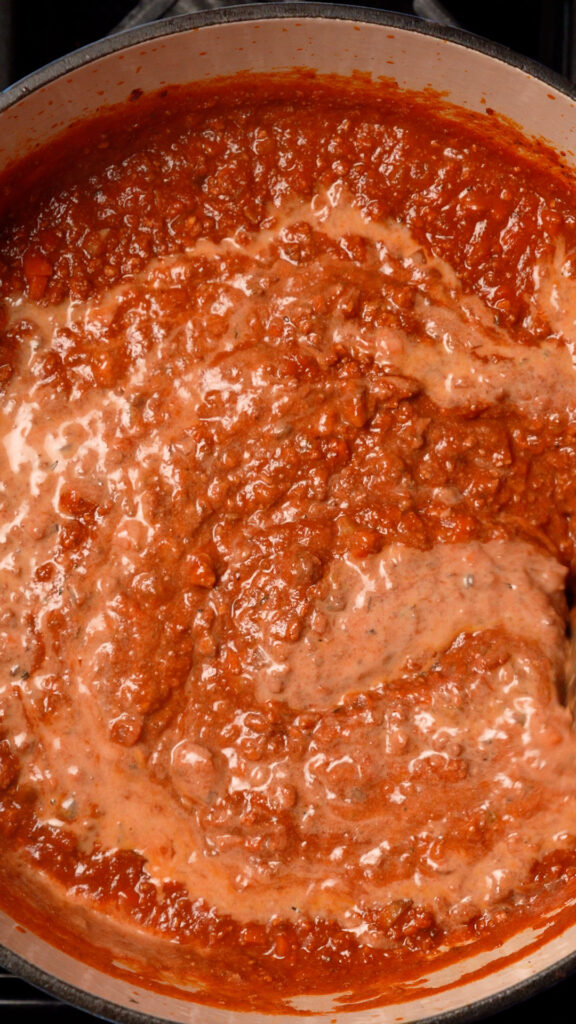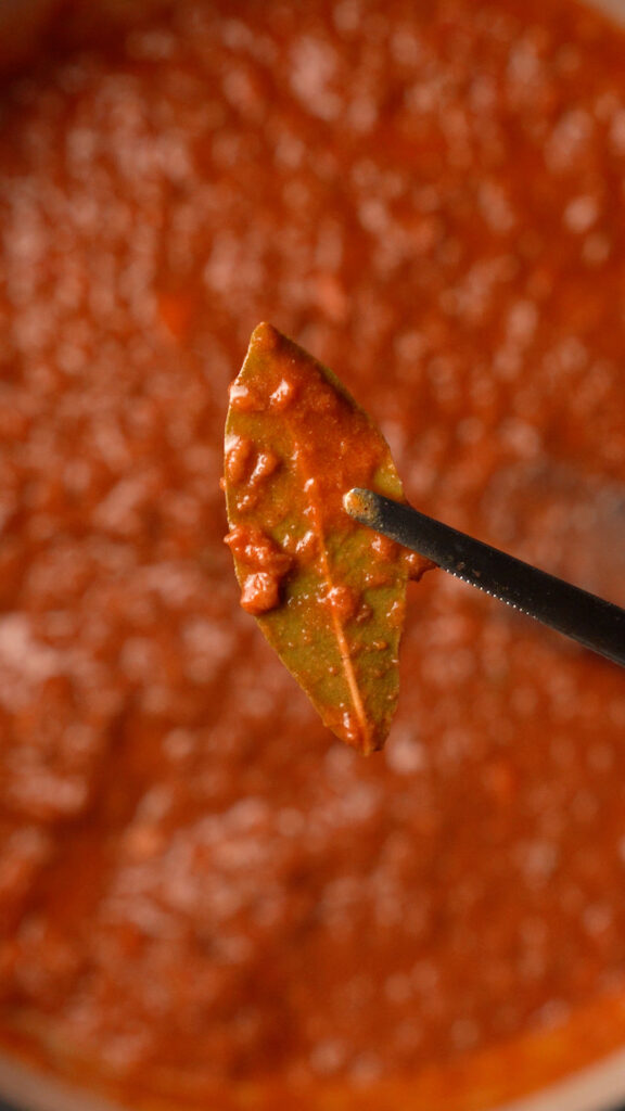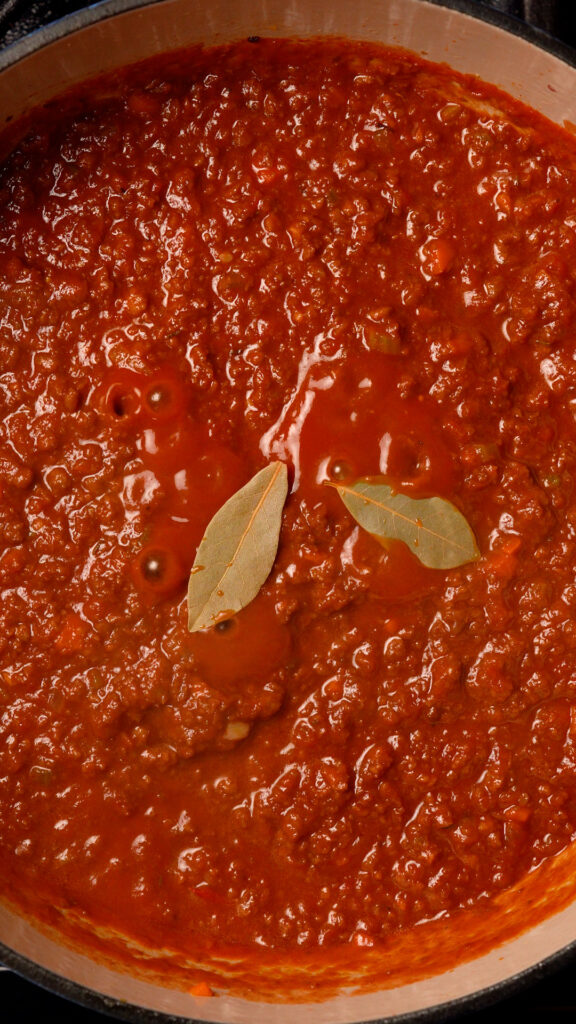 - Simmer for 1 – 2 hours, depending on your patience (I usually do 1 and it’s super good!) Stirring every now and then. If it’s reducing too much, lower the heat, and add 1/4 – 1/2 a cup of water and stir to loosen.