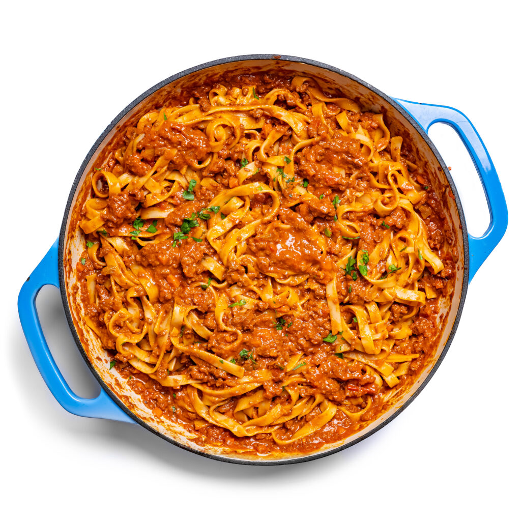This was insanely delicious. Cooked the tofu meat in the oven while sweating the bolognese veg. My partner said it was better than traditional meat bolognese (though did acknowledge it was so good he wouldn’t be able to tell it wasn’t traditional). The slow cooked sauce was so good I was hesitant to add the milk and nooch at the end, but I did and it was great.