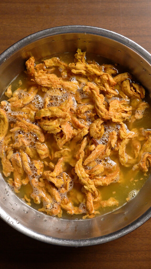 - You can also further dry them out by toasting them in a dry pan to cook out even more of the moisture. This should help remove the aftertaste as well as any mushiness. It should yield a chewy soy curl that’s still juicy.
