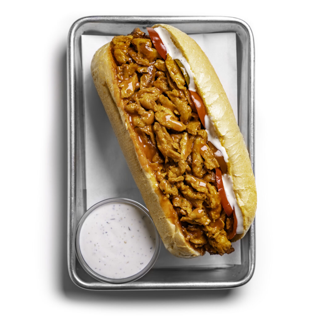 All the Tangy and Spicy Flavor of a Buffalo Cheesesteak, but totally Vegan thanks to Soy Curls!