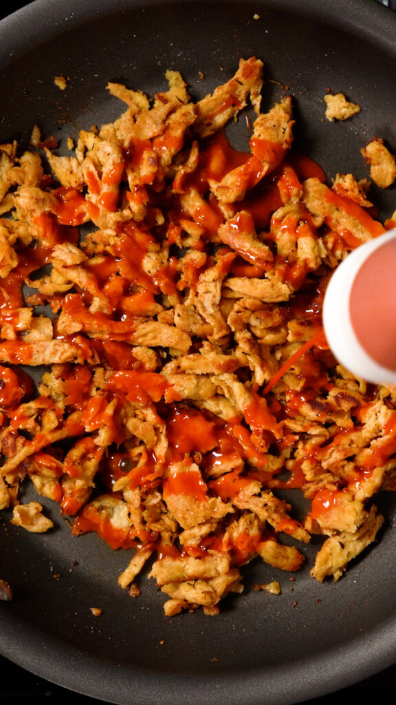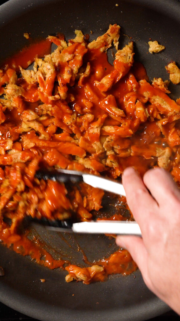 Then add in some Buffalo Sauce, and toss to coat.