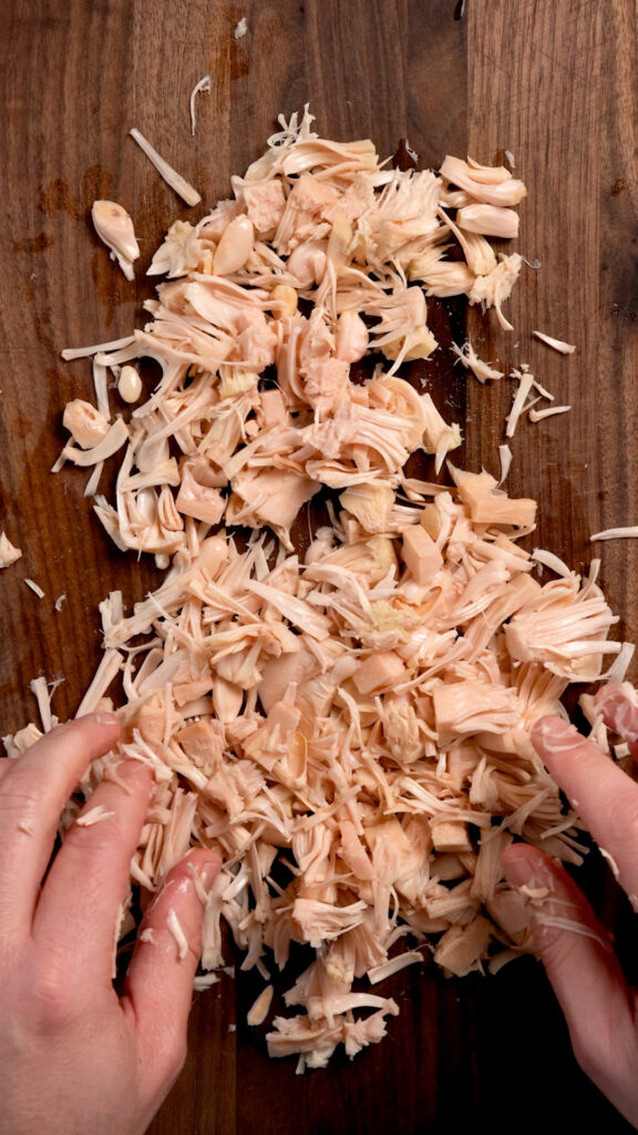 Simply shred up the jackfruit, then cook and season it.