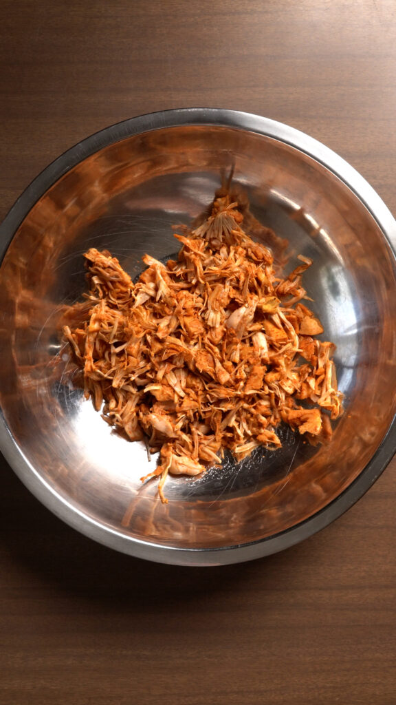 Jackfruit “Chicken” – Instead of chicken we are using my good buddy jackfruit. You can also use some shredded tofu, or mushrooms if you like too. For a breakdown of that, check out my Pulled Pork recipe.
