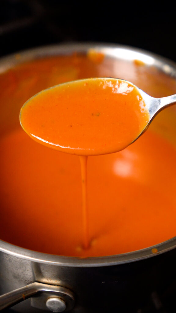 I tested this recipe many times with a few techniques. All of them should give you perfect Buffalo Sauce that is emulsified and creamy, perfect for drizzling on anything. If you’ve ever had issues with your emulsification breaking, then keep reading, I have some solutions!