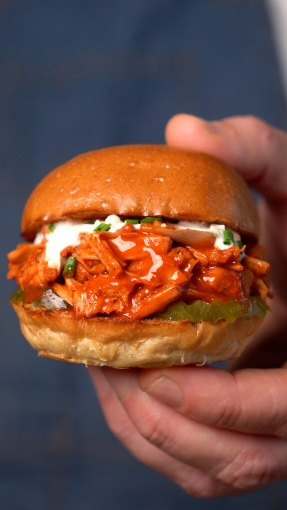 You can keep the Buffalo Jackfruit warm on low and covered and then make a slider as you please if hosting a party.