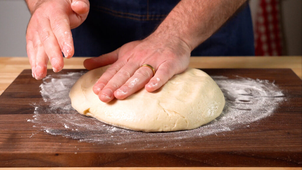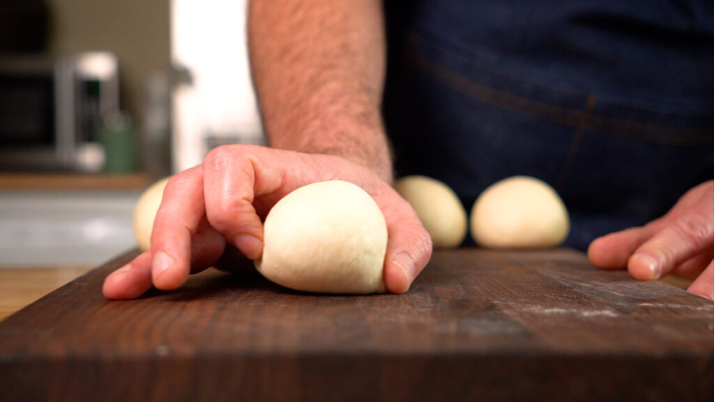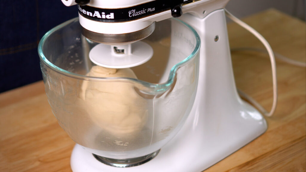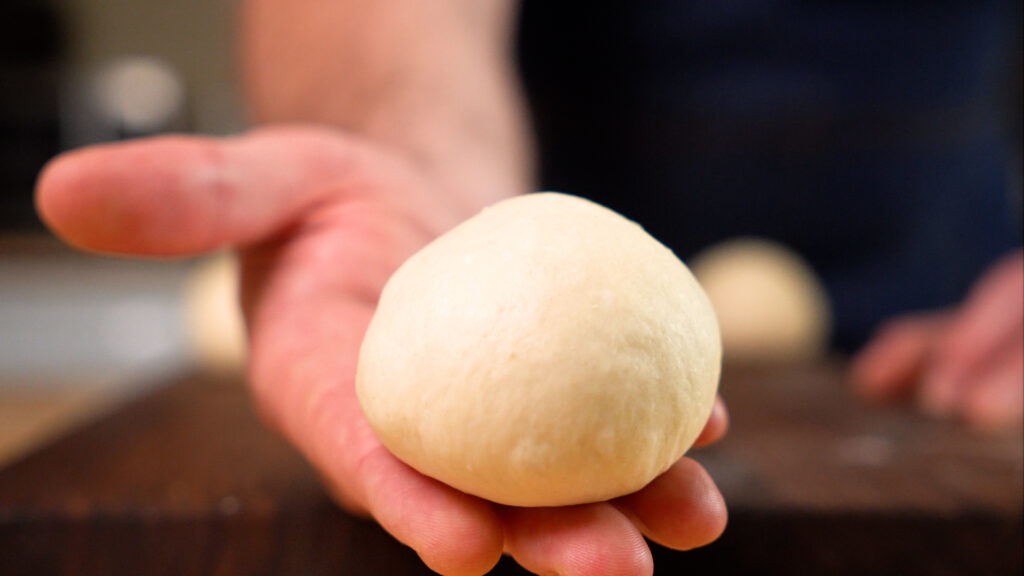 Once your dough ball is slightly firm but not hard it’s good. It should still be soft and supple, but hold it’s shape. If you press down on it with your finger, it should spring back up.