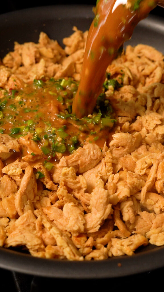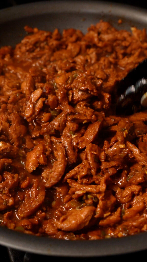 This couldn’t be easier! First rehydrate the soy curls in some water for about 10 minutes.