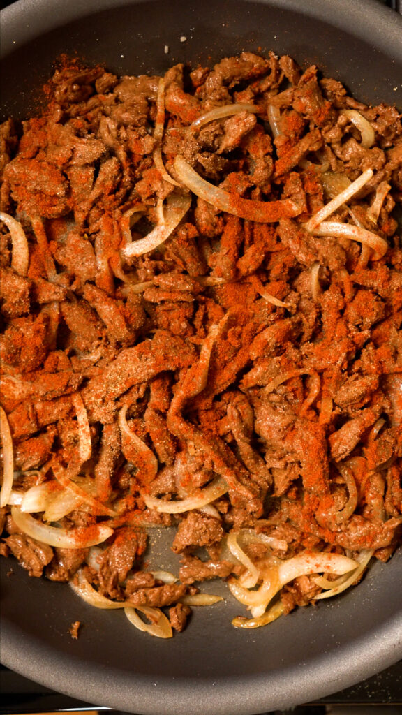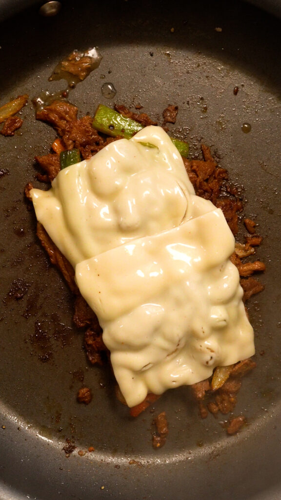 When I used Impossible meat, it was more similar to a Chopped Cheese, definitely tasted more like a burger and less like a steak, but you do what you want! To do this, just cook 12 – 16 oz plant based meat and season how you like! It’s that easy!