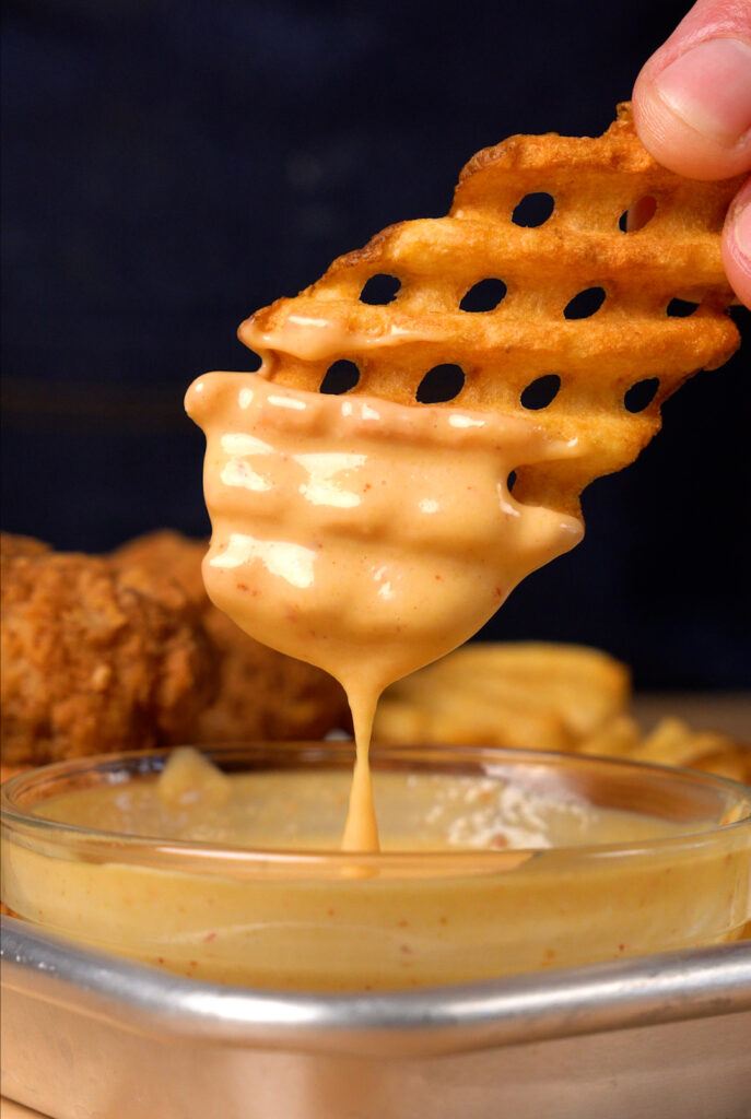 Seriously, this sauce is addictively good! Obviously it’s great on a Vegan Chick-fil-A Sandwich, Nuggets, Waffle Fries and in fact it’s good with just about anything deep fried!
