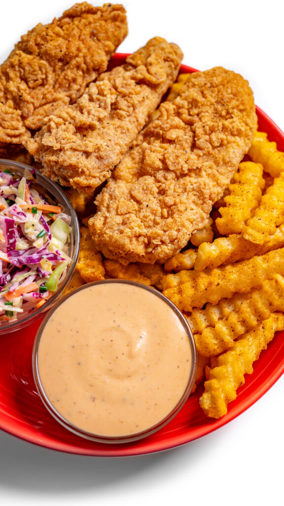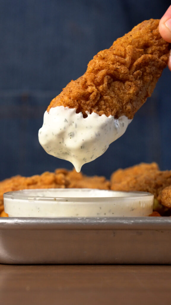 - Protip: Fry up a test tender to test out the seasoning of the breading and adjust if needed!