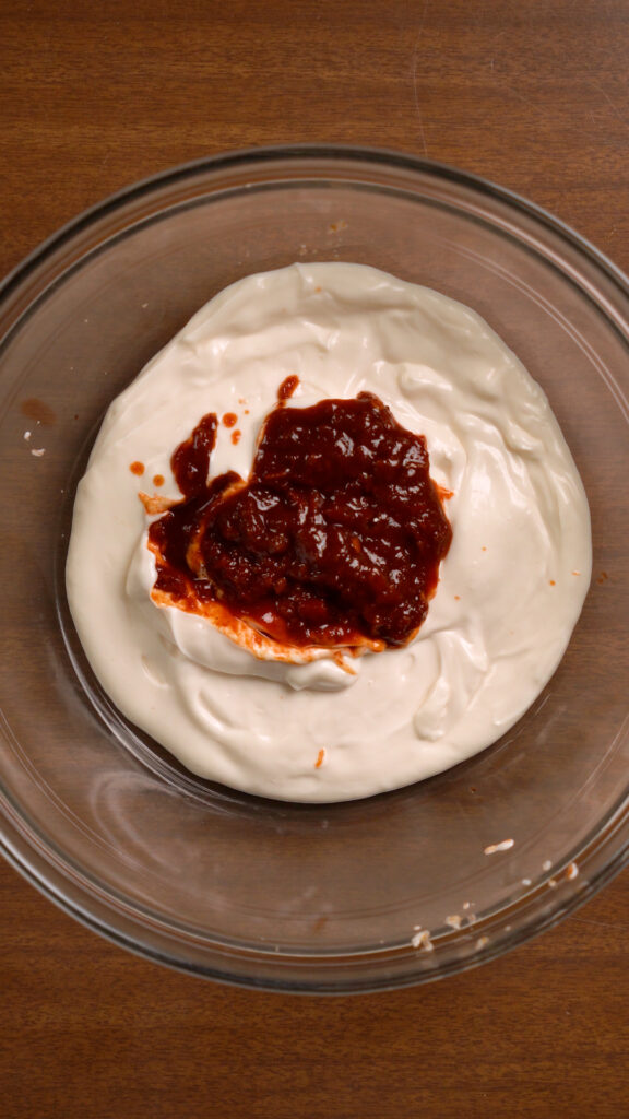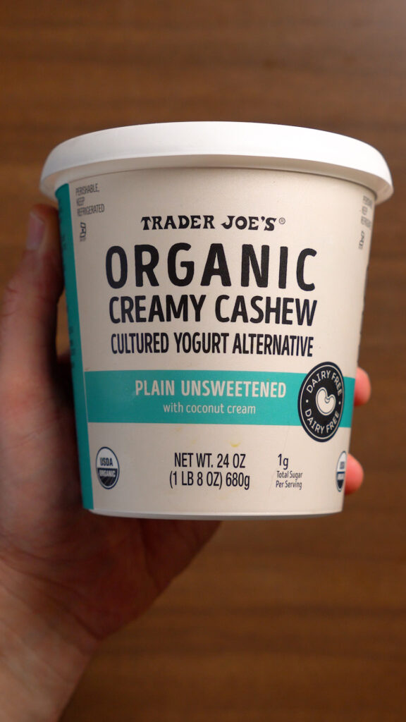 - You can use Vegan Mayo, or unsweetened Vegan Yogurt. I like to do half and half. The Trader Joe’s Cashew Yogurt is my favorite right now.