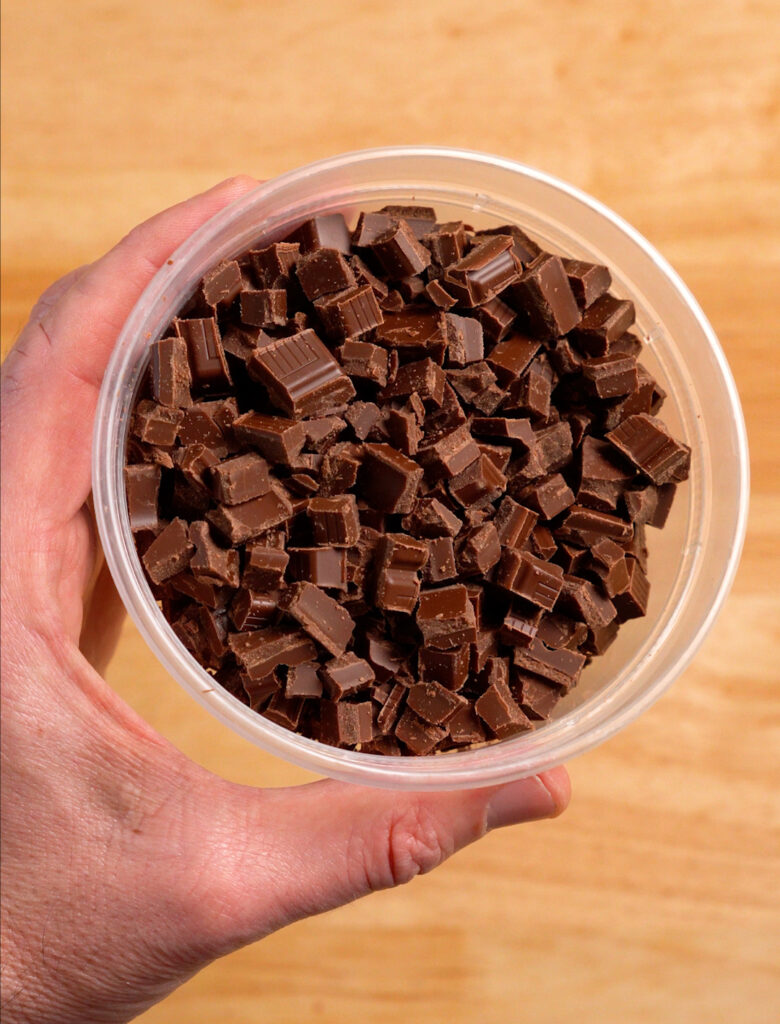 Chop up your chocolate bar into chunks, make them as big or as small as you like!