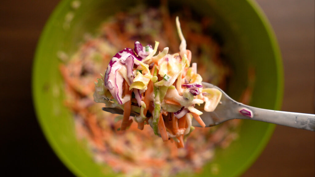 Coleslaw is one of those things that’s very easy to make, but also very easy to screw up. More often than not, I wasn’t crazy about it because it was usually half mayo and thus was drowning in it!