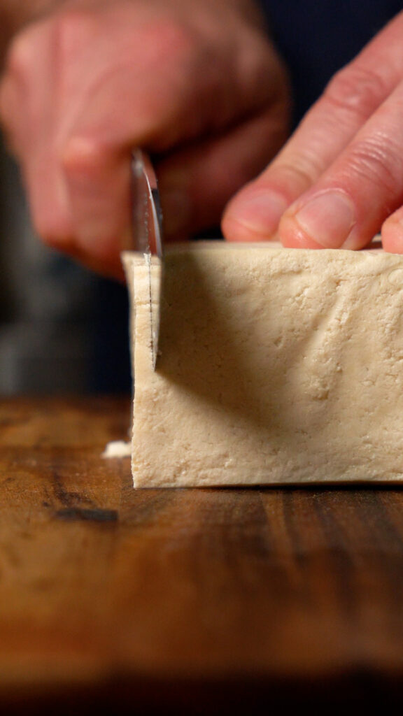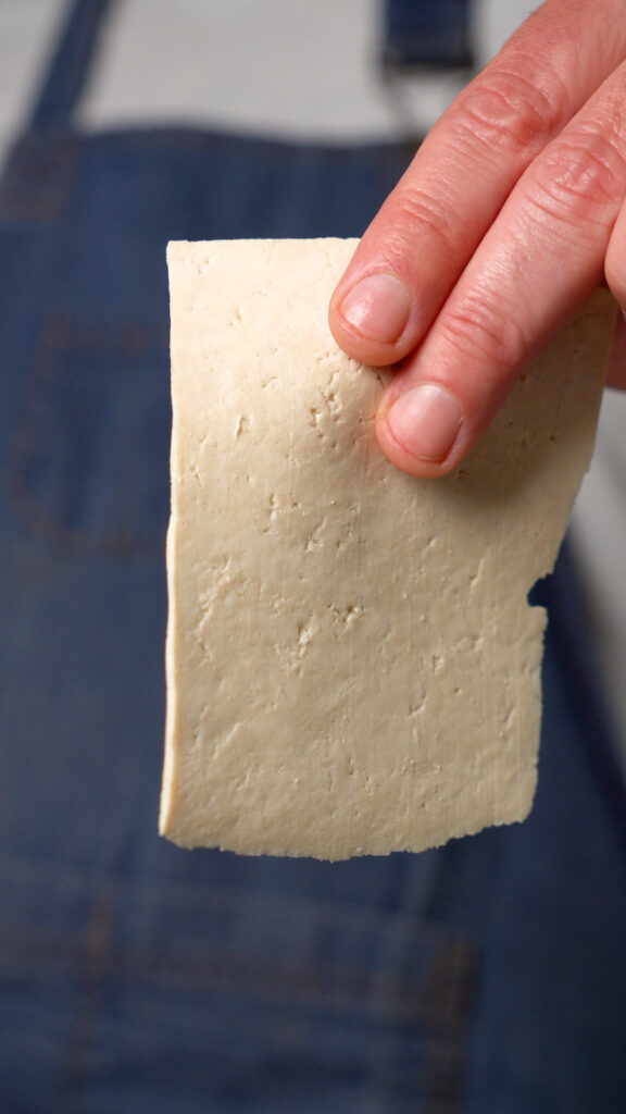 I highly recommend Super Firm Tofu as it’s vacuum packed and doesn’t require pressing. You can start slicing it right out of the package!