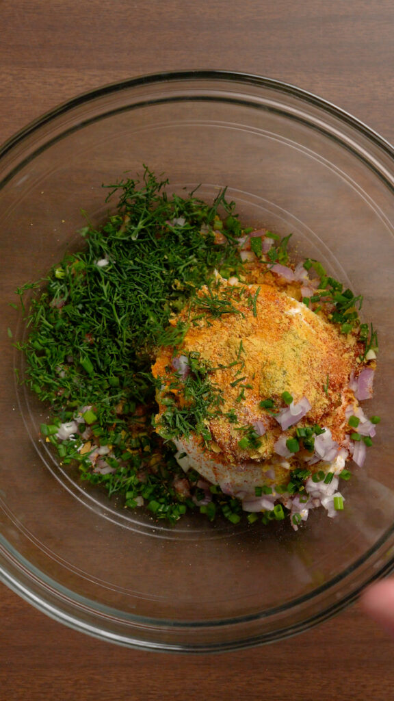 - Add the rest of the ingredients for the dressing and combine throughly with a fork or whisk. Taste and adjust for seasoning adding whatever else you’d like. I personally loved adding the optional shallots and dill. You can also add some Black Salt for an eggy flavor.