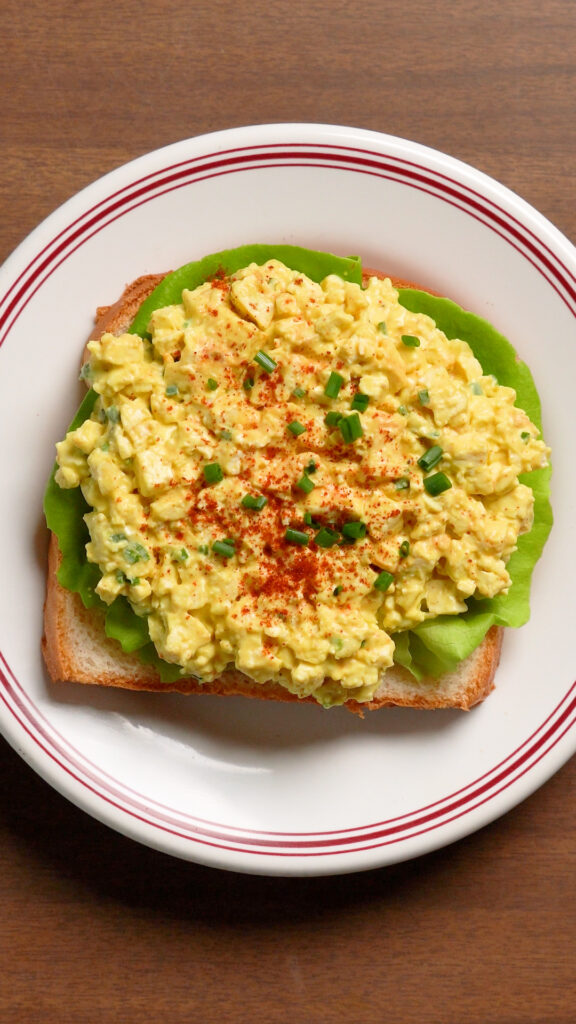 This is such a great recipe. I’ve made egg salads before but always with a mayo base, which gives it a strong mayo flavour. The cream cheese base is such a good idea – you can control the flavours and I like that it makes the mixture thicker (can pile more on the sandwich hehe). I added dill and black salt as suggested and it was perfect!