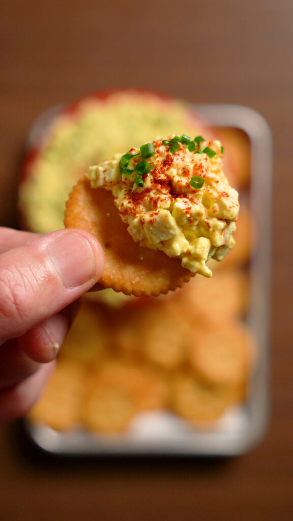 - Your Vegan Egg Salad is done! Enjoy with crackers, or on a sandwich!