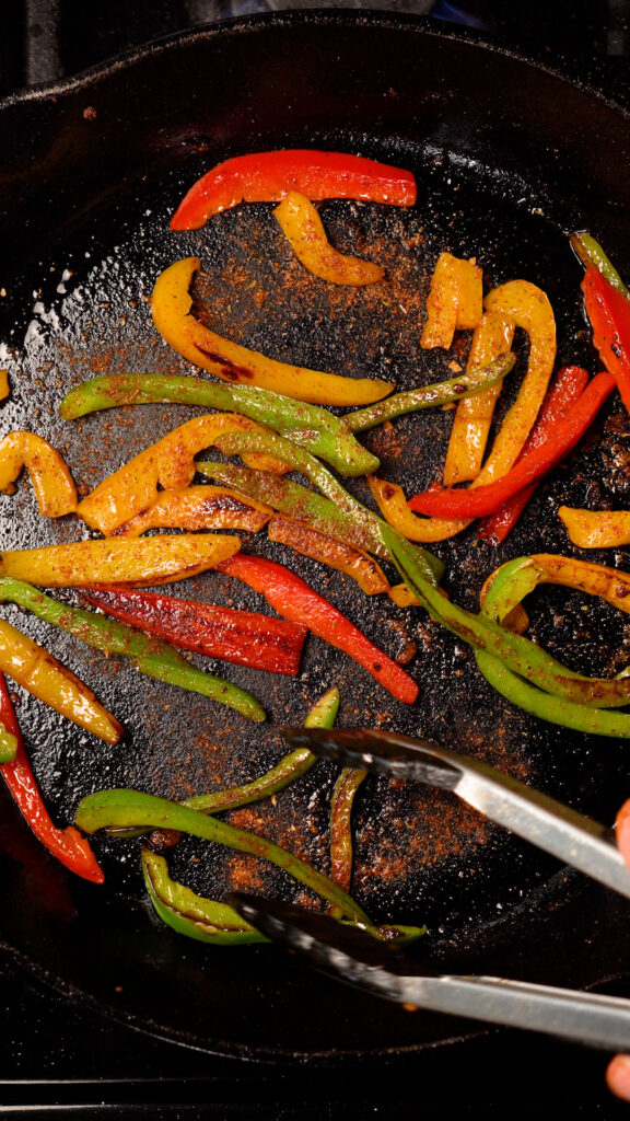 - Again, don’t crowd the pan, and do these in batches as needed. These don’t need to cook long as the pan is nice and hot. You should see some charring within a few minutes. Season to taste with the same seasonings as the Fajitas.