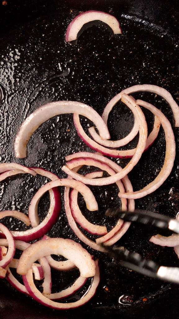 Again, don’t crowd the pan, and do these in batches as needed. These don’t need to cook long as the pan is nice and hot. You should see some charring within a few minutes. Season to taste with the same seasonings as the Fajitas.