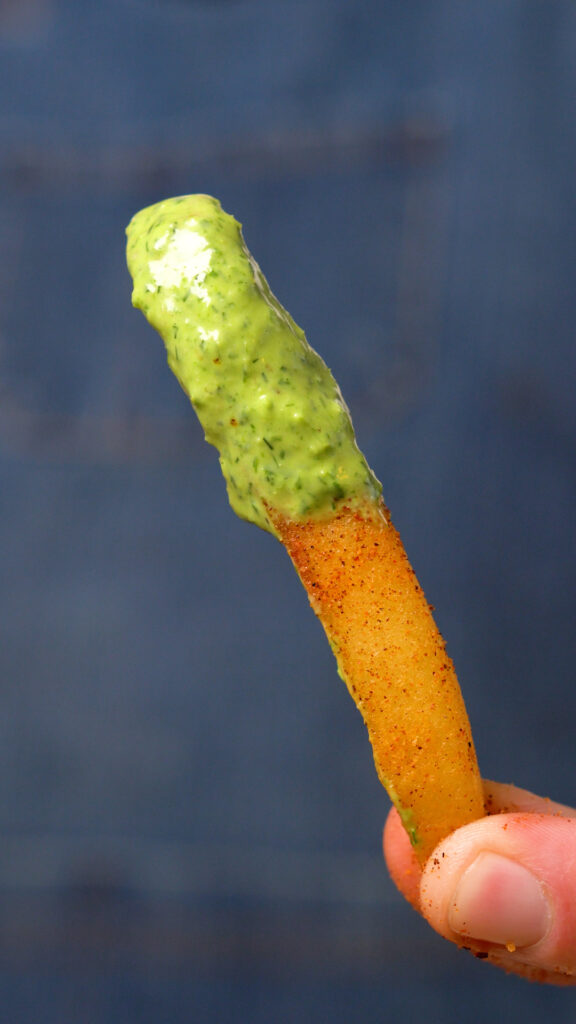 Most people seem to enjoy this on a salad, but I really dug it as a dip and condiment! I dipped some Fries and Crackers!