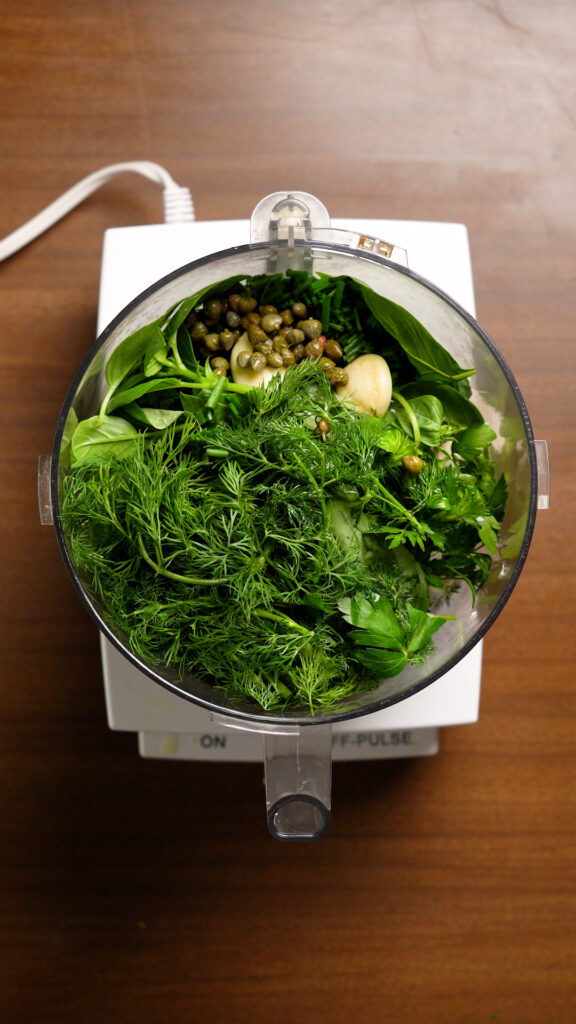 - Herbs – I like doing about 1 cup of Italian Parsley, and then a half cup each of Dill and Basil. Then finish that off with some chives. Feel free to tailor this to your tastes! You can also use some Mint or Tarragon.