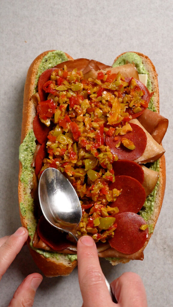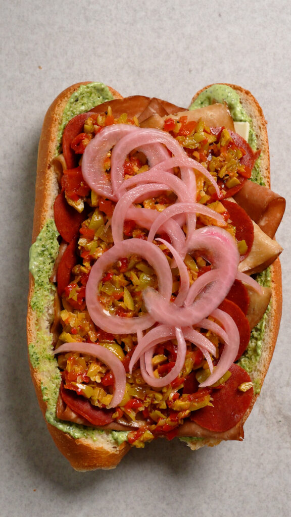 This was delicious. I used your vegan turkey recipe and added some store-bought vegan pepperoni. I’m getting hungry just thinking about it again. Only advice to other cooks is to be careful with jarred muffaletta, it’s easy to accidentally bring along too much of the oil and it’s a mess. On the second sandwich I used a fork to get the salad out and that worked much better.