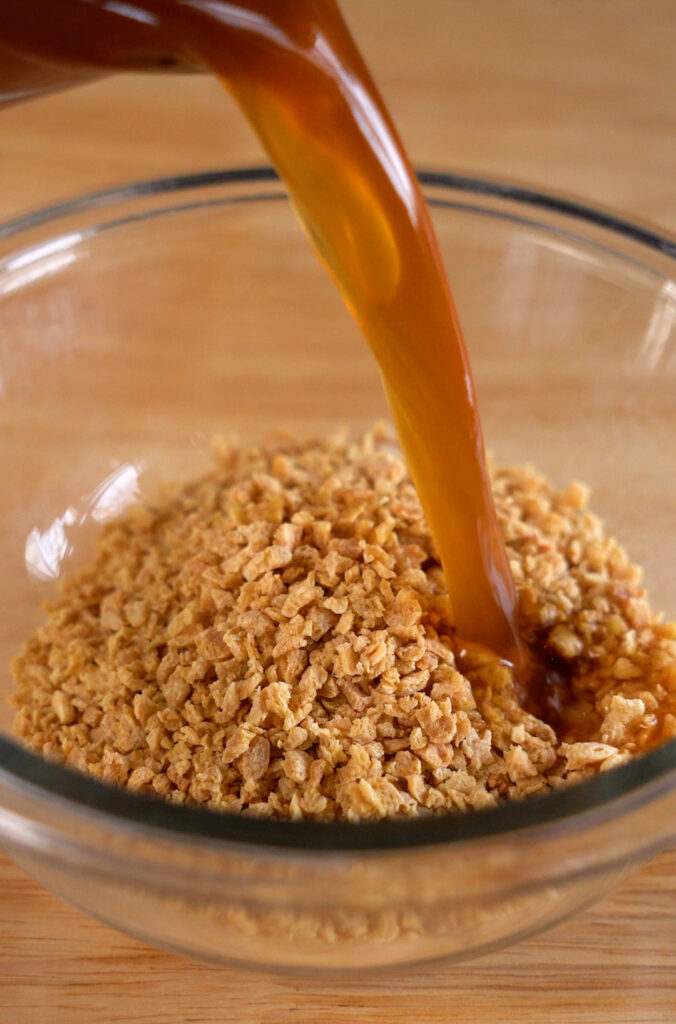If you are using TVP, you’ll need to rehydrate it in some broth.
