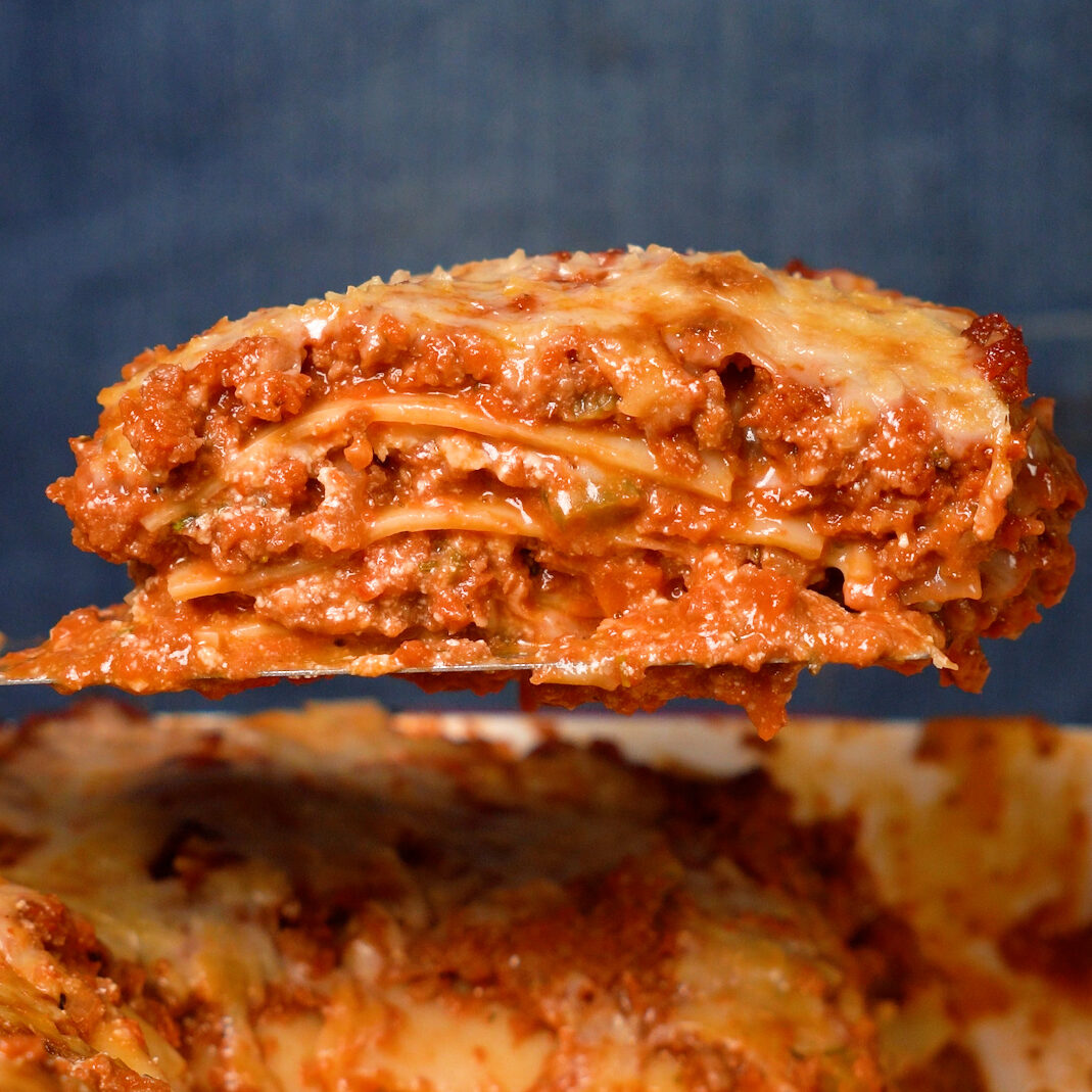 - NOTE: You will likely have some extra Meat Sauce (like 2 – 3 cups worth) after assembling the Lasagna, this can be stored for 3 – 5 days in the fridge or frozen for up to 3 months. Use on any pasta you like!