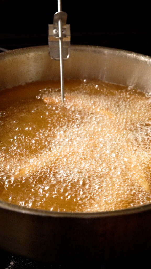 - Get a deep fry thermometer to monitor the oil temperature.