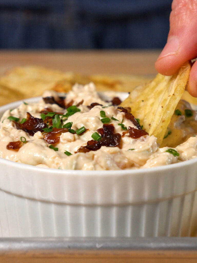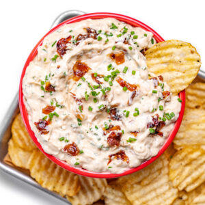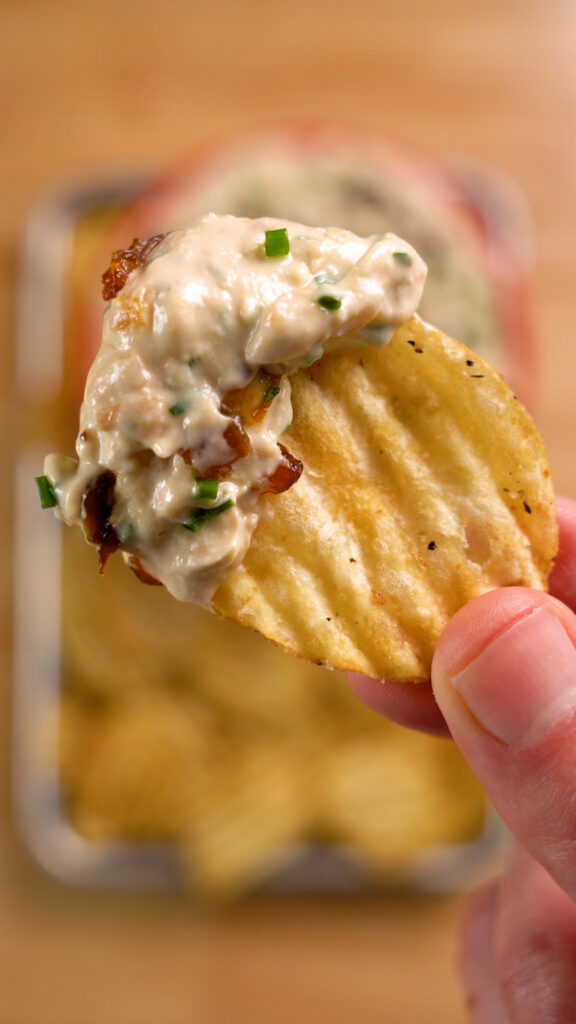 It’s super rich and decadent thanks to the caramelized onions and sour cream, cream cheese and mayo. The fresh herbs and seasonings add a bunch of supporting flavor as well. It’s honestly super hard to not just got hog wild on this dip and eat it all in one sitting like a goblin!