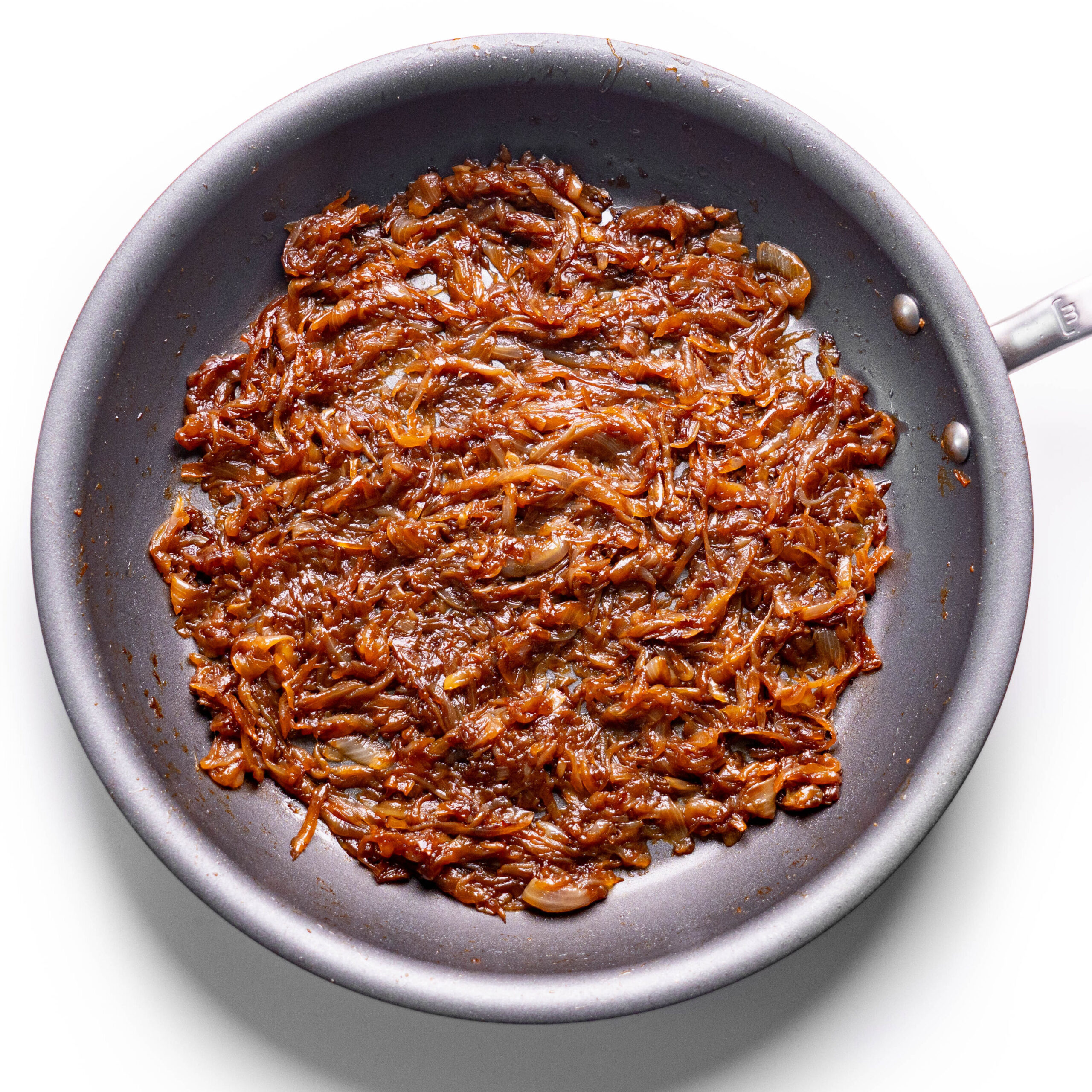 - Keep an eye on the onions and make sure they don’t brown too fast, or even worse, burn! Lower the heat as needed, stir frequently, and deglaze with some water if they stick to the pan. They should be perfect in about 45 minutes to 1 hour.