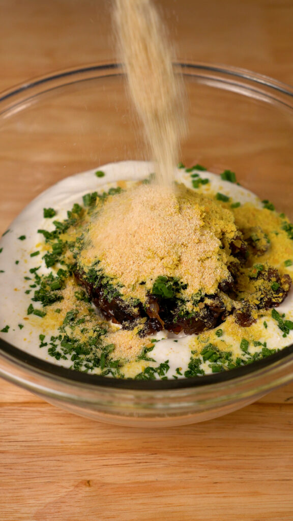 I am not vegan, but I do enjoy vegan foods. Also, I have a variety of food intolerances which leaves me unable to eat dairy, eggs, and many other foods. I gave this recipe a try and it was AMAZING! I swapped out the sour cream recipe for store vegan sour cream. I also used vegan chive and onion cream cheese. I omitted the nutritional yeast since I am allergic to it. I blended everything in the food processor. The final result was the most amazing tasting onion dip I’ve ever had! I almost cried because I haven’t had onion dip in 10 years! Great job burger dude!