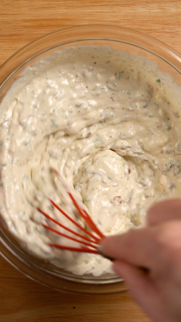 Also feel free to play around with the ratios. You can also use unsweetened vegan yogurt instead of mayo. I would recommend using the cream cheese for sure though. This will help the dip get nice and firm in the fridge.