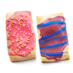 The Royal Icing is so freaking good! It will harden and get crackly just like real Pop-Tarts! You can add any kind of coloring or flavoring that you like too. I know the OG Strawberry is white icing, but I wanted something visually more POPPING so I added a couple drops of red food dye. I also added some strawberry extract so it actually tasted like strawberries! There’s a lot of extracts for flavoring out there so experiment with whatever you like!