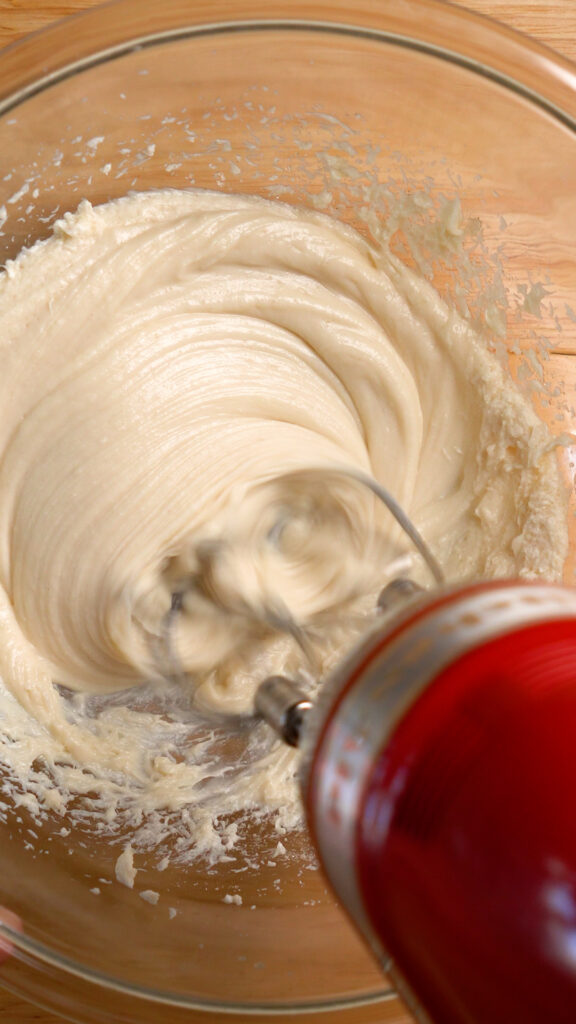 - Add the cream cheese, sugar and vanilla to a bowl and mix with a hand mixer. You can try to whisk by hand but it might take a while, so a hand mixer is highly recommended. Mix until smooth and creamy!