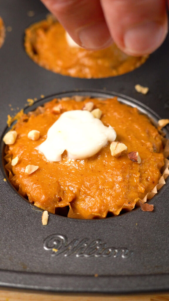- Top each muffin with a bit of chopped dry roasted nuts or pumpkin seeds.