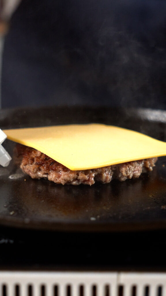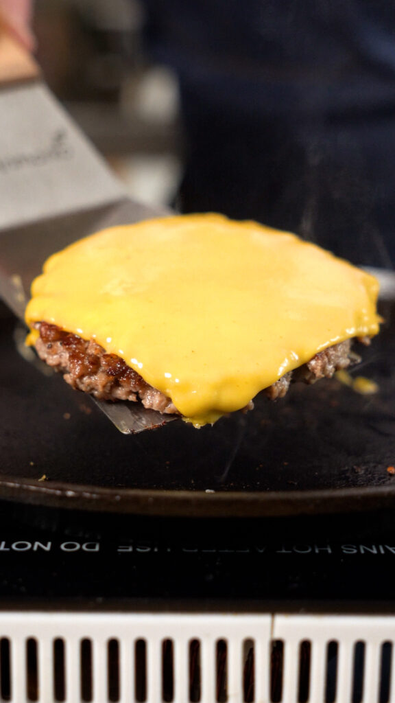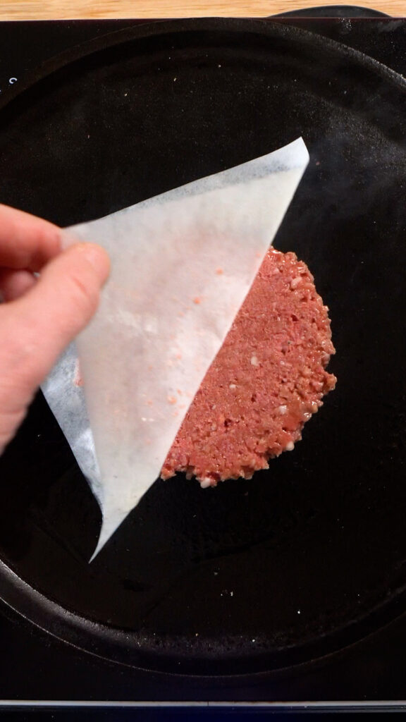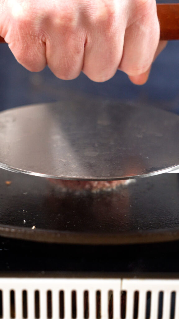 Don’t smash it too thin so the patty doesn’t dry out. You can use some burger or parchment paper to ensure the spatula / press doesn’t stick too.