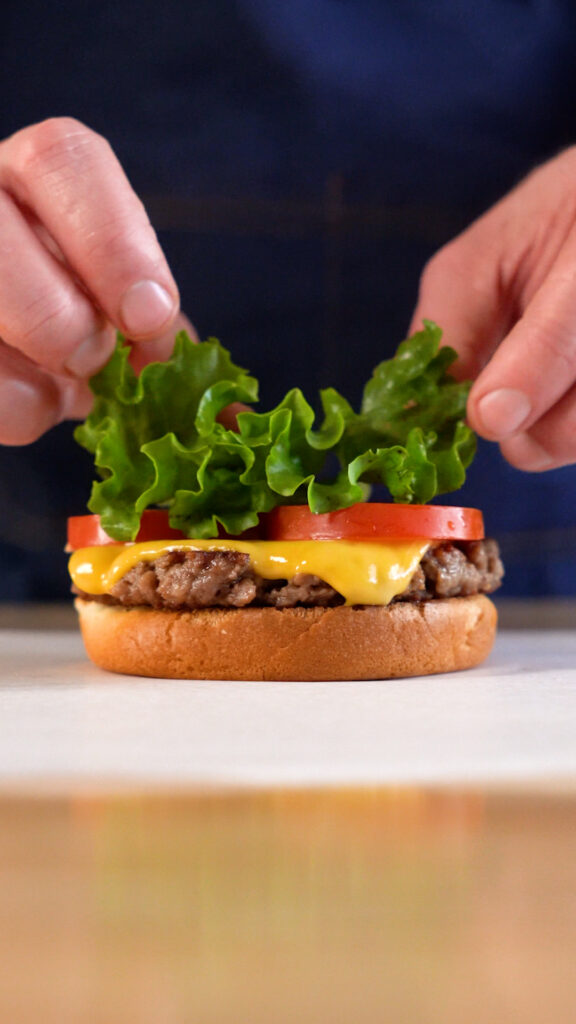 - Use 3 – 4 oz. of plant-based meat and don’t smash it too thin (about 1/2 inch is good).