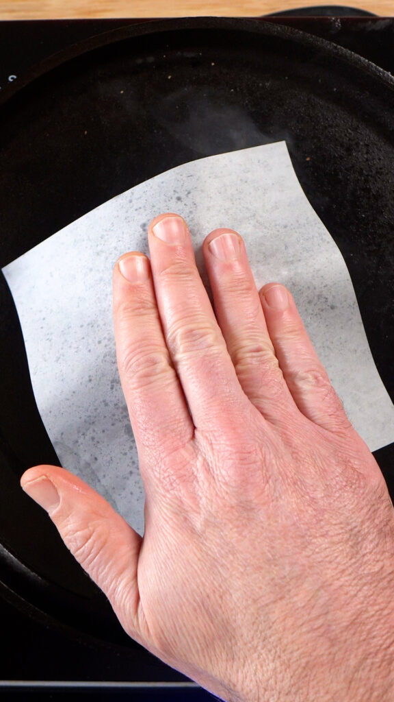 - Add some high smoke point oil to the pan and spread it around with your spatula.