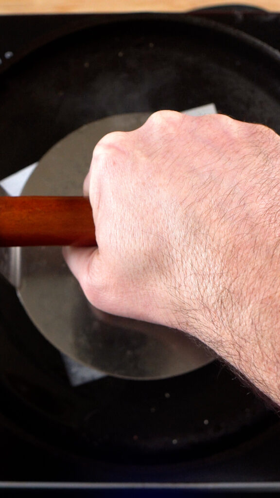 - To smash, use a burger iron or sturdy, flat, metal spatula.