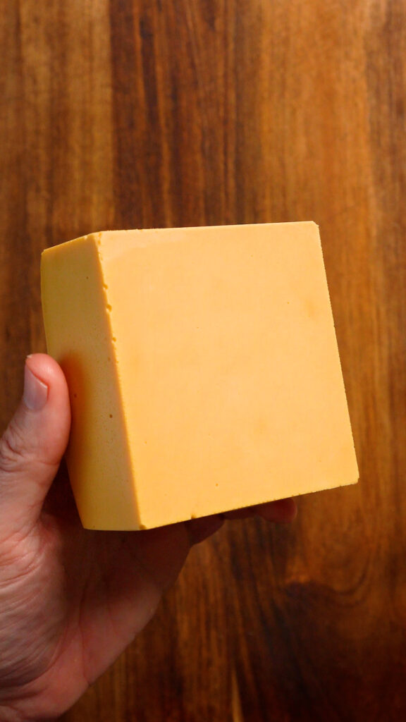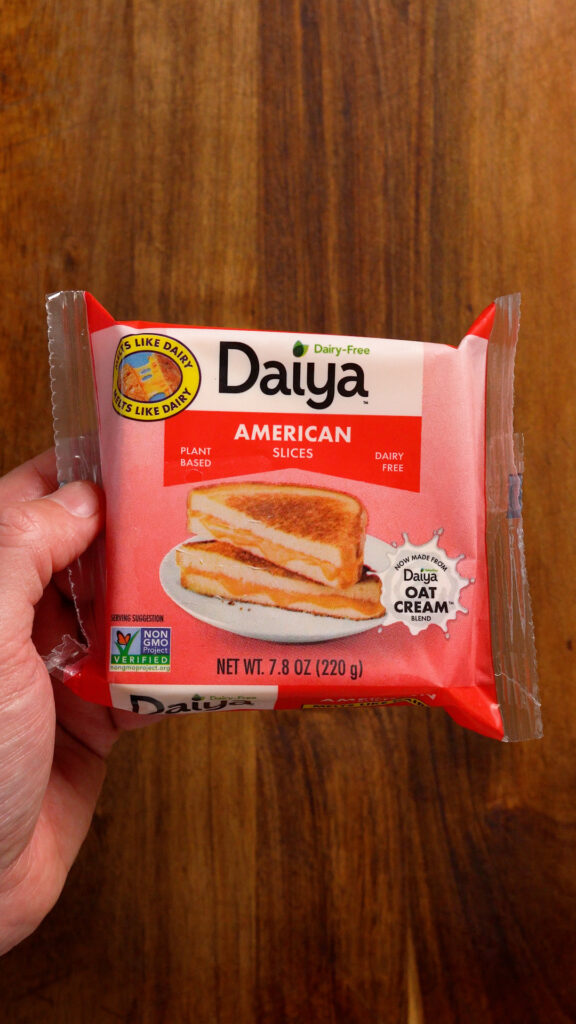 - This couldn’t be easier! Simply chop up the vegan cheese slices. I’ve found that Daiya American to be the best, but others should work fine too.