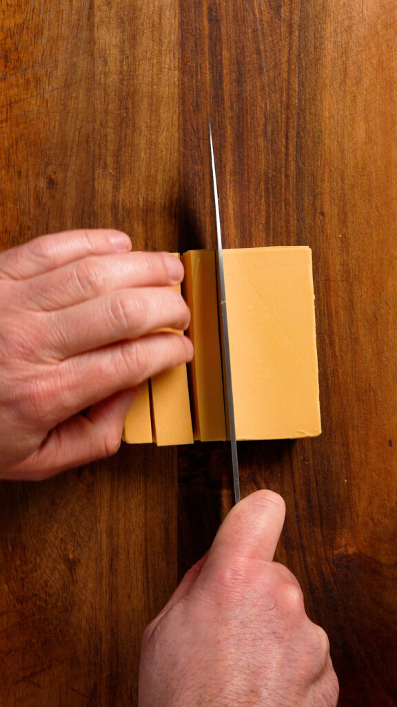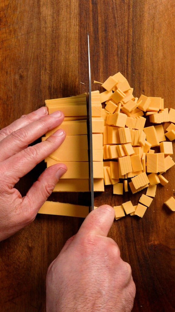 Simply chop up the vegan cheese slices.