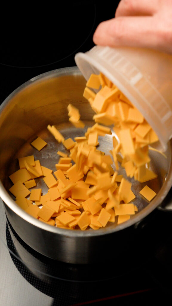 Add that to a pot over medium heat, stirring frequently until melted.