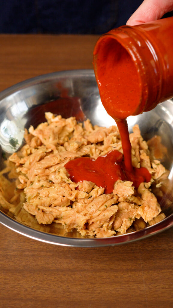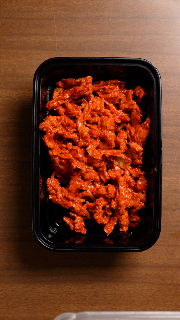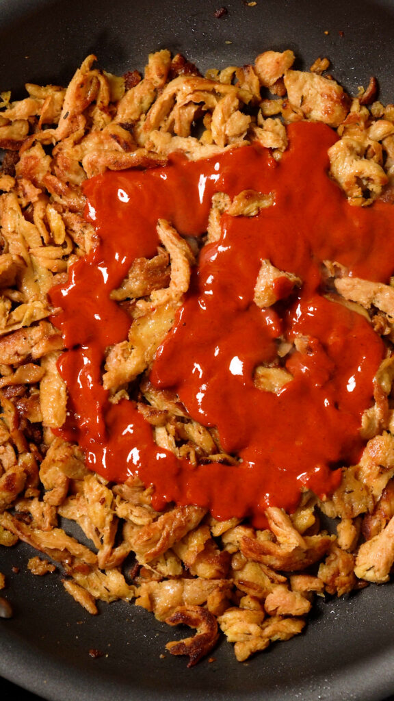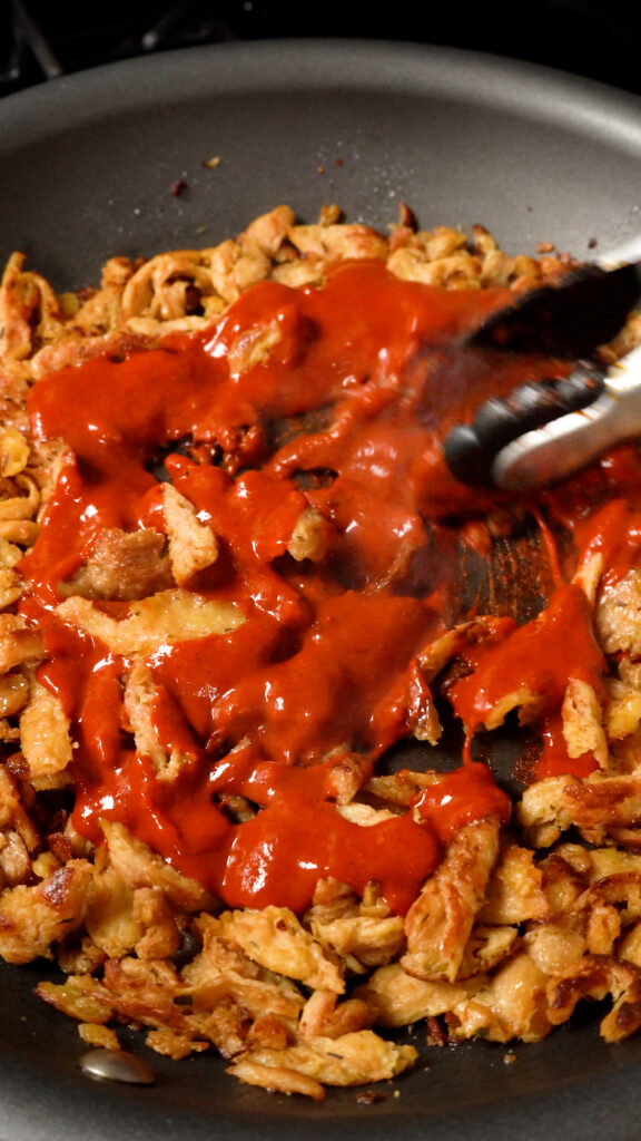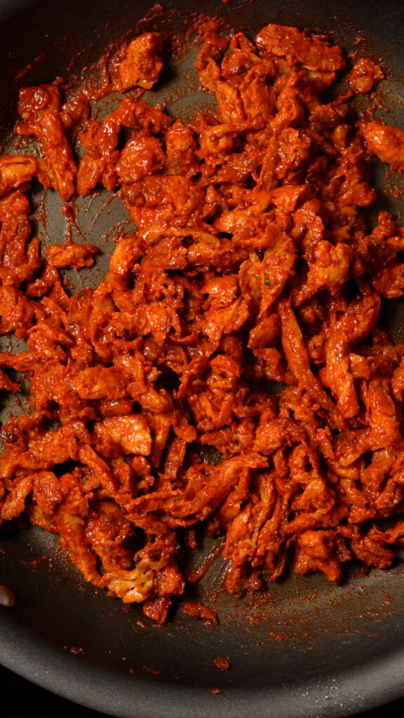 - Prepare the Soy Curls as per this RECIPE.
