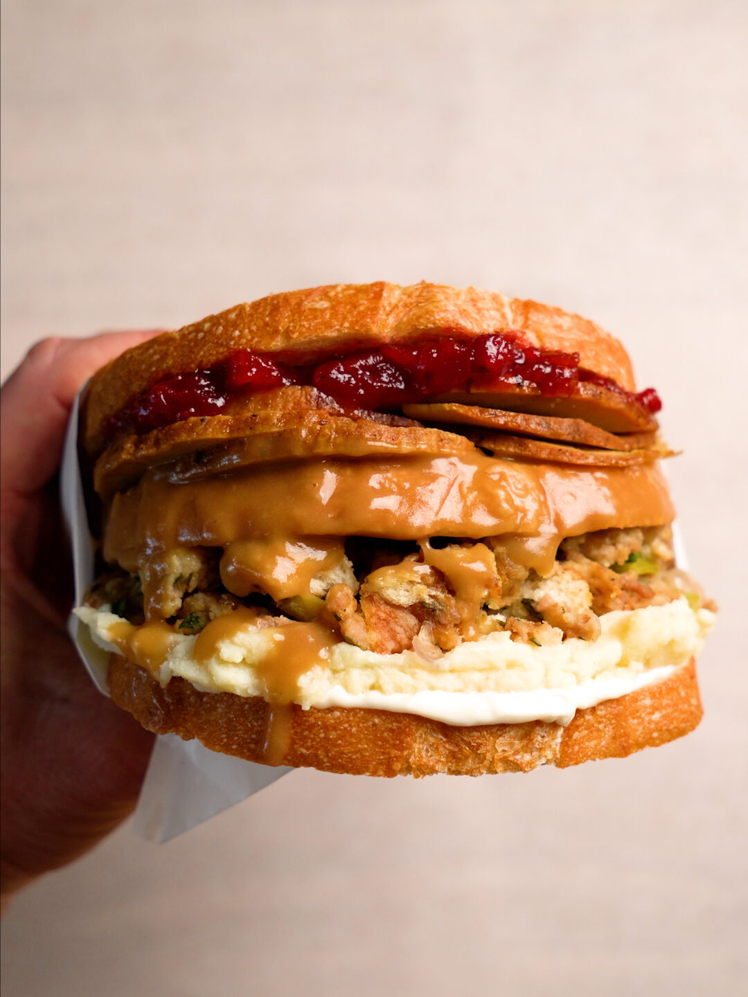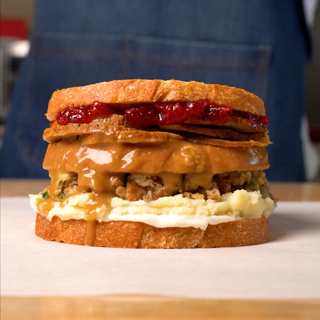 This is by far, one of the most indulgent and over the top sandwiches there is. It really does feel like you’re eating an entire holiday dinner in each bite, and that’s because you are!