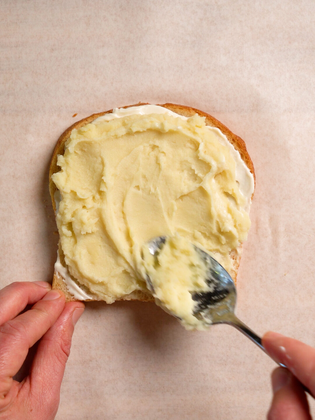 - Toast your bread if desired. Then spread the vegan mayo on the bottom piece.