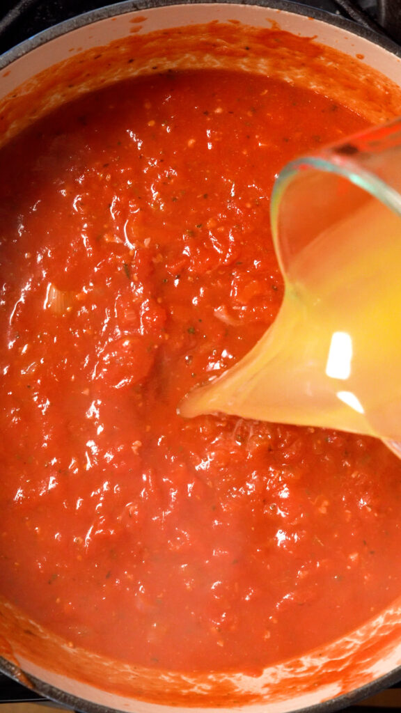 - Tomatoes – I highly suggest using canned tomatoes, especially when tomatoes aren’t in season. They taste way better and are way easier to prepare. The 28 oz. can of whole, peeled San Marzano style tomatoes are perfect.
