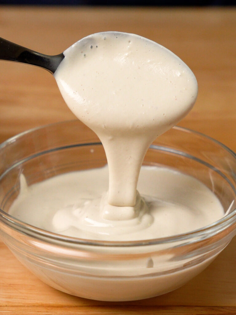 - Blend in a high speed blender with the plant milk until smooth. Add more plant milk for a thinner consistency if desired. Set aside.