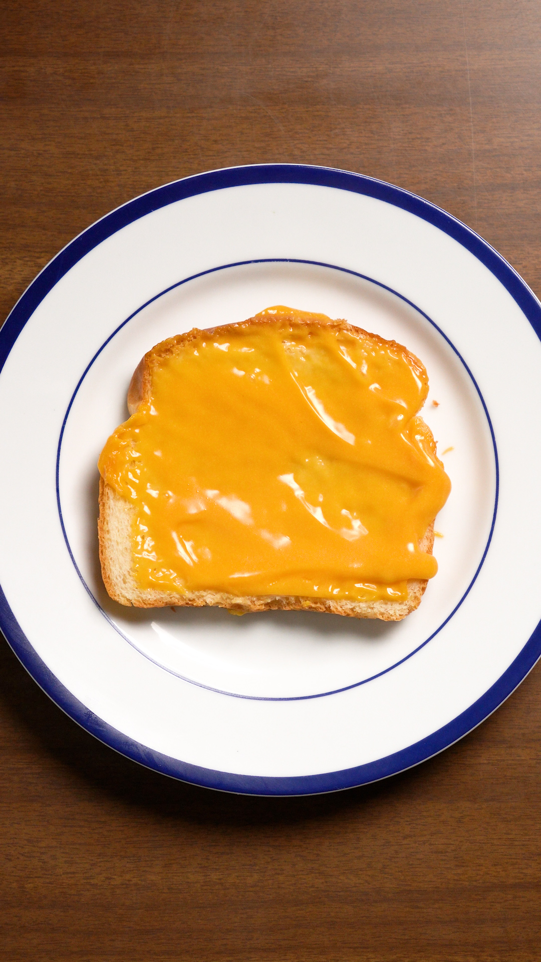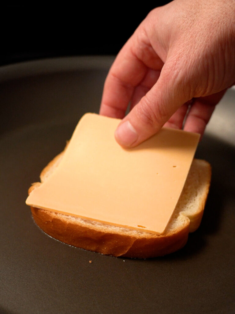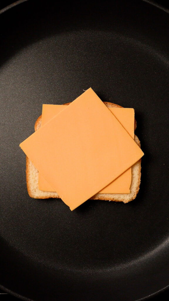 - Simply butter your bread of choice (white, sourdough or rye work well). Add a slice of the buttered bread (butter side down) to a non-stick skillet over medium low heat. Then a 2 slices of vegan american cheese. Add the other slice of buttered bread (butter side up).